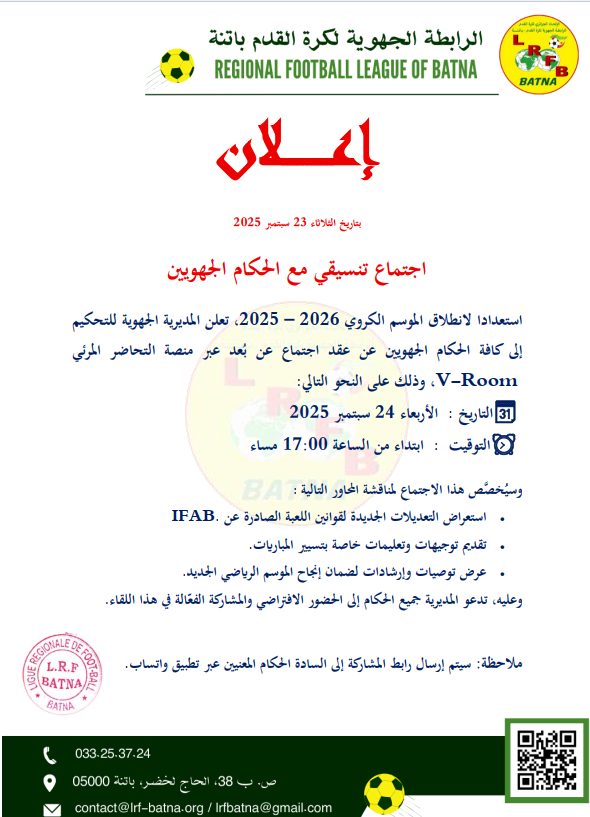 2016 - 2025 Ligue Régionale de Football - Batna.