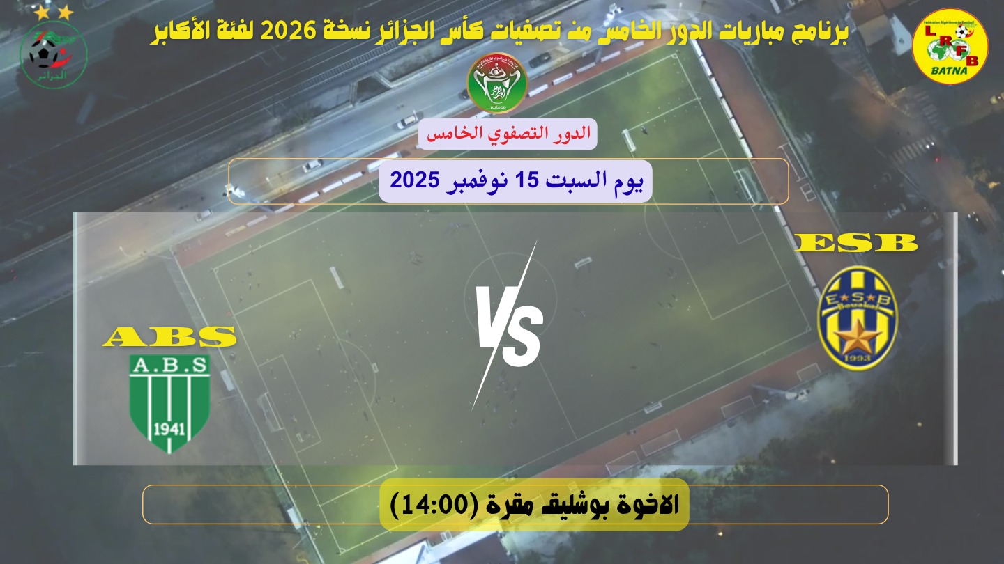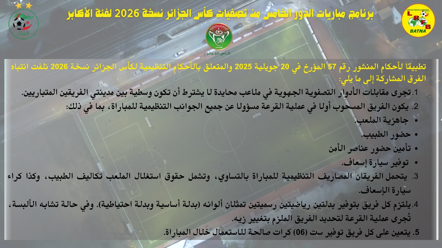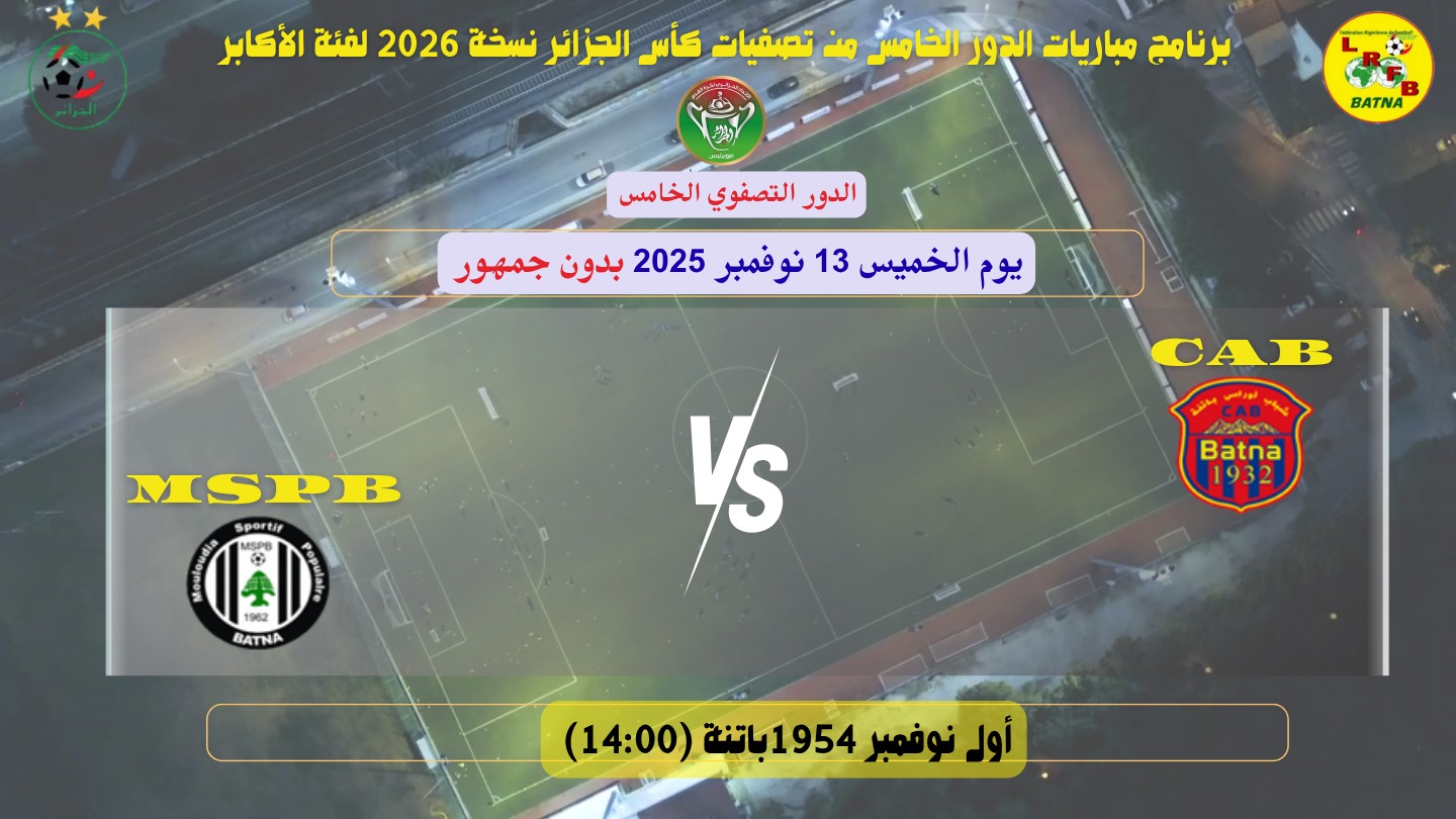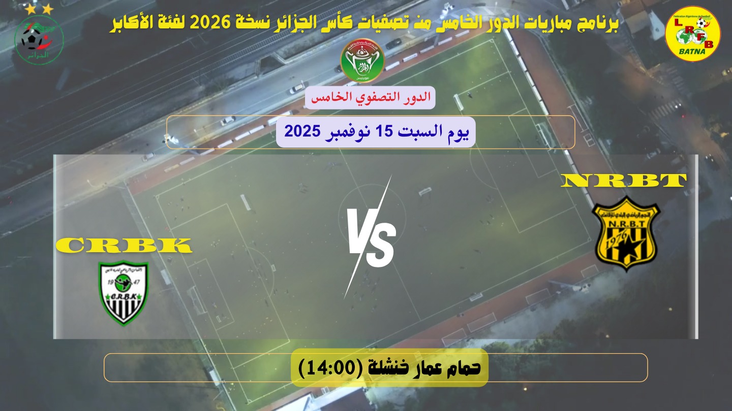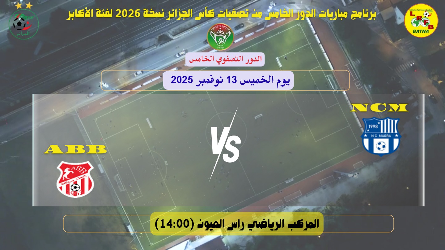 | برنامج مباريات الدّور الخامس التصفوي لكأس الجزائر 2026 أكابر |
