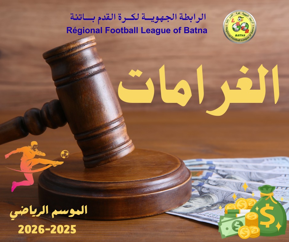 | الغرامات المالية المستحقة للفرق اتجاه الرابطة الجهوية لكرة القدم باتنة إلى غاية 31 جانفي 2026، الواجب تسديدها قبل تاريخ 28 فيفري 2026 |