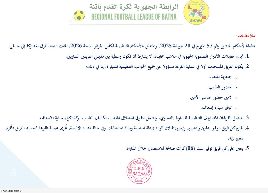 2016 - 2025 Ligue Régionale de Football - Batna.