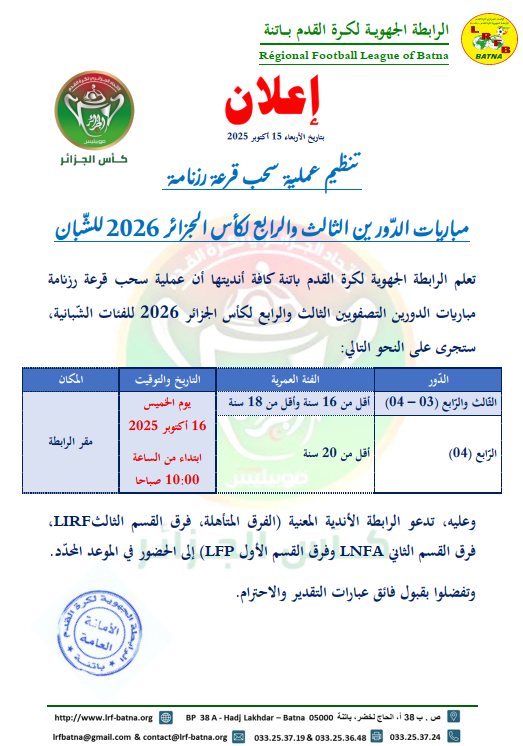 2016 - 2025 Ligue Régionale de Football - Batna.