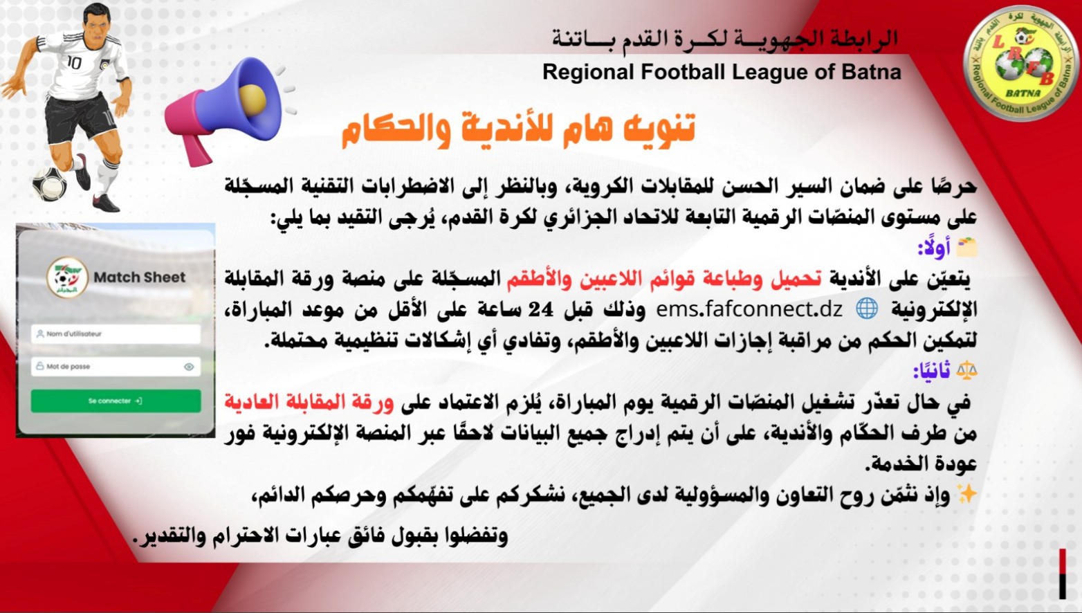 2016 - 2025 Ligue Régionale de Football - Batna.