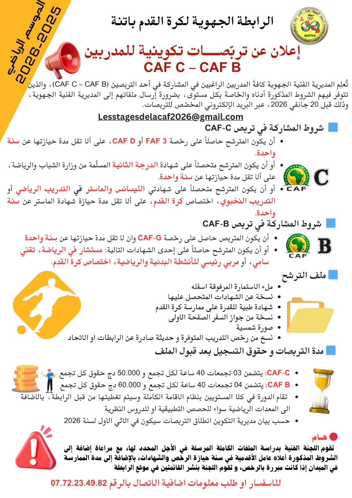 | المديرية الفنية الجهوية: إعلان عن تربصات تكوينية للمدربين CAF C - CAF B |